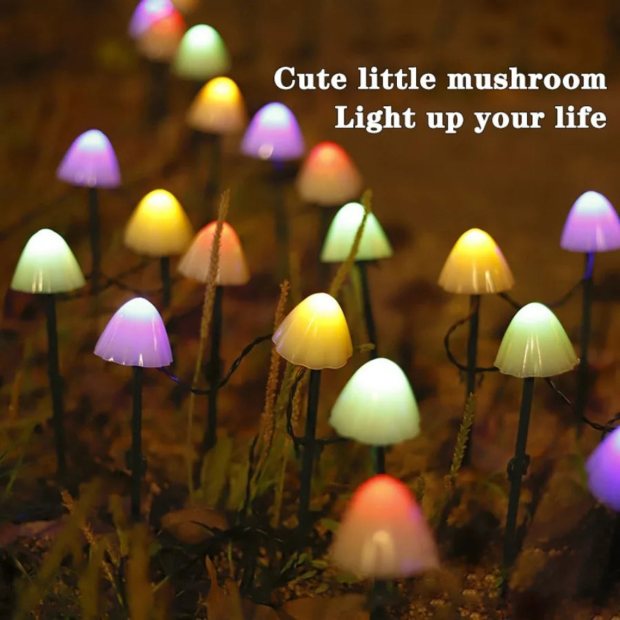 Dekorativ solcellsdriven svamplampa för utomhusbruk. Laddas av solen på 6–8 timmar och lyser automatiskt i 8–10 timmar när det blir mörkt. Tillverkad i slitstark ABS-plast med IP65-klassning, vilket gör den vattentät och tålig mot regn och fukt. Finns i varmt ljus eller flerfärgat – perfekt för trädgård, gräsmatta, uteplats, gångar och festdekorationer.