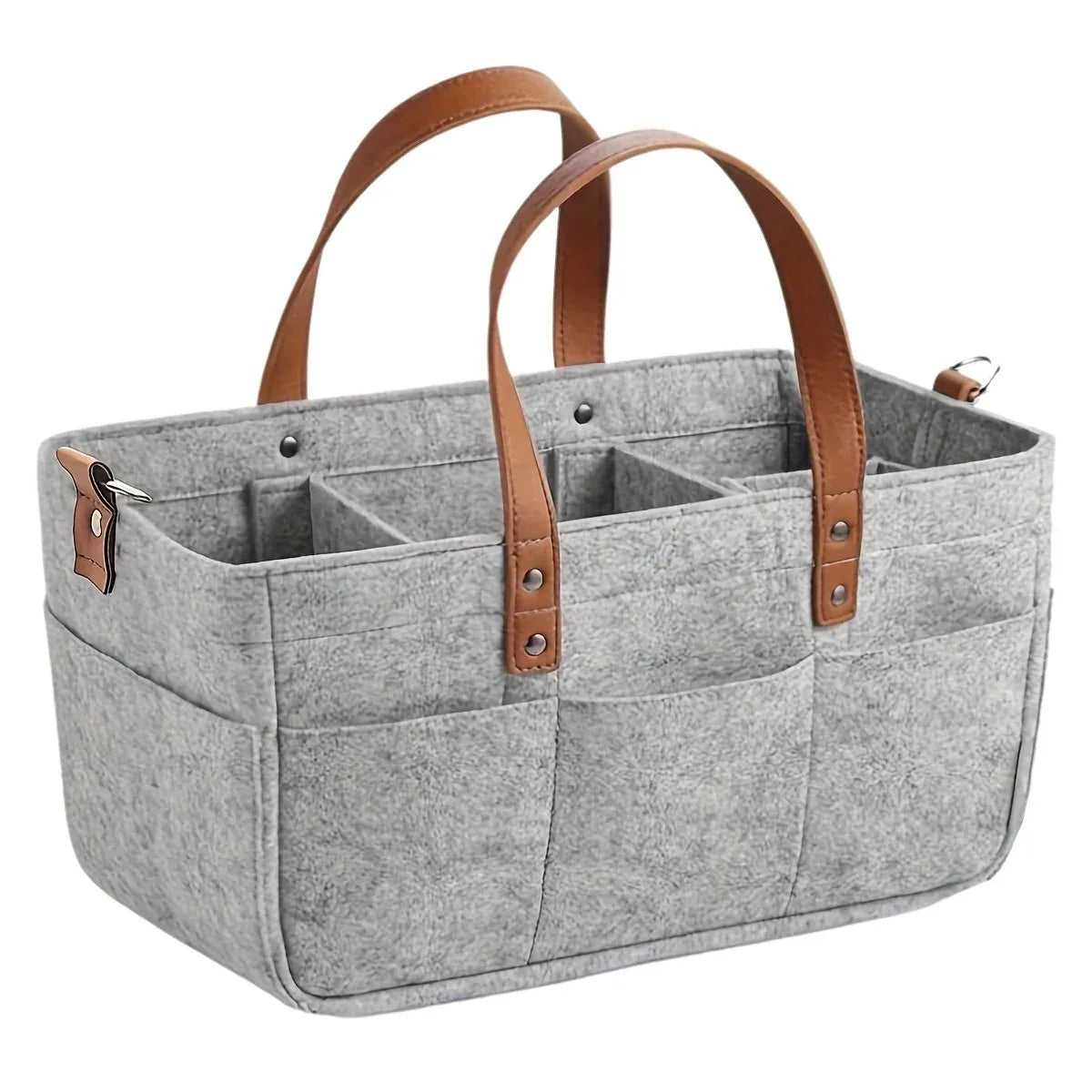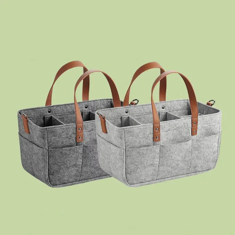 Barnvagnsförvaring i filt – flerlagers väska med PU-handtag
